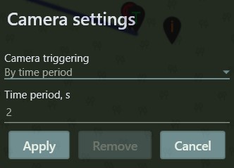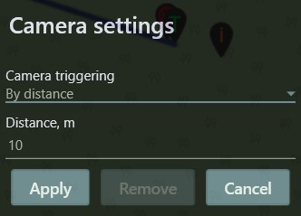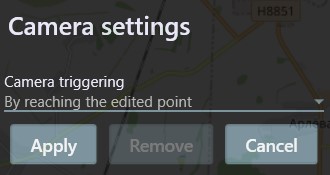 This means that upon reaching the edited point, the camera will begin shooting at certain distances in meters until another command for the camera is specified in the flight mission.