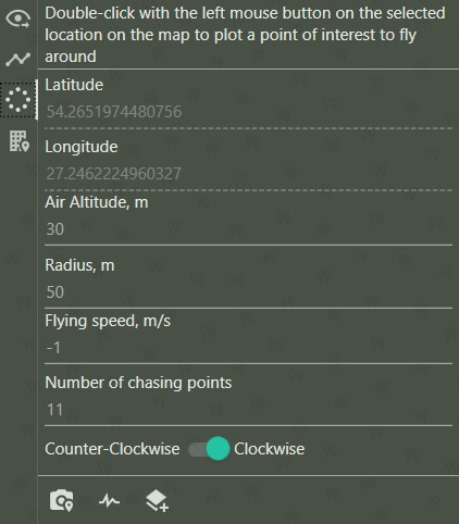 You can change the flight altitude, flight radius, speed, number of flight points and direction (clockwise/counterclockwise).