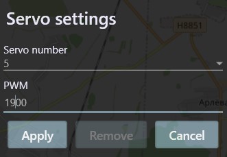 Clicking on it opens a settings dialog with the following options for sending the signal to the output (e.g. for moving a servo):