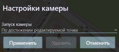 После добавления каждой путевой точки, начиная с точки взлета, в режиме редактирования активируется кнопка привязки настроек камеры.