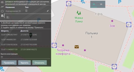После добавления типа конструкции Вам необходимо двойным щелчком мыши указать на карте каждый из ее углов.