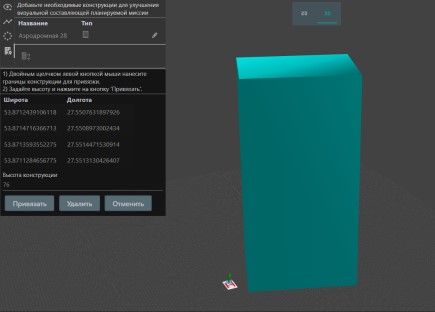 В итоге после переключения на 3D карту, можно будет увидеть 3D модель привязанной конструкции.